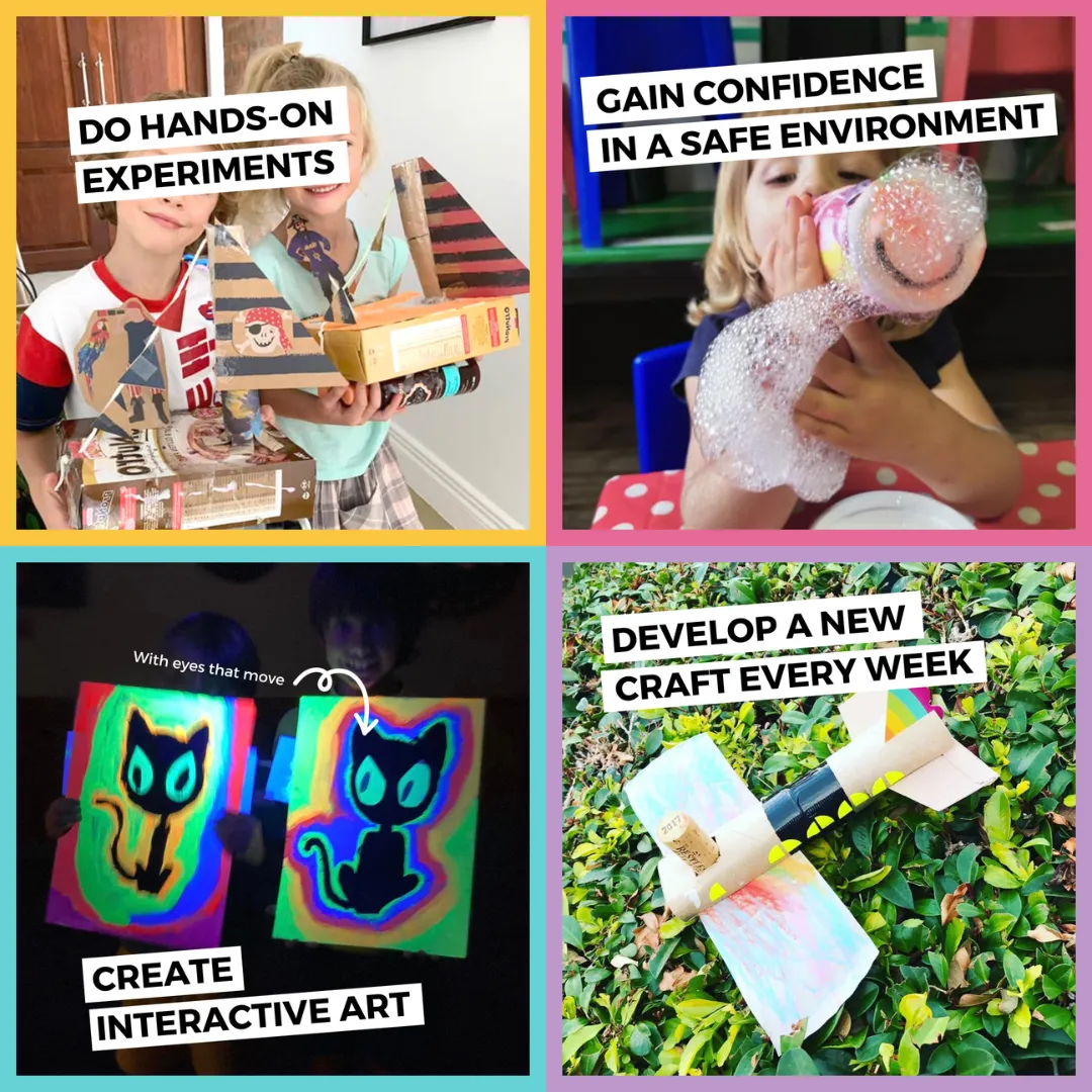 - Projects: include painting, sculpting, building, and STEAM-based fun!